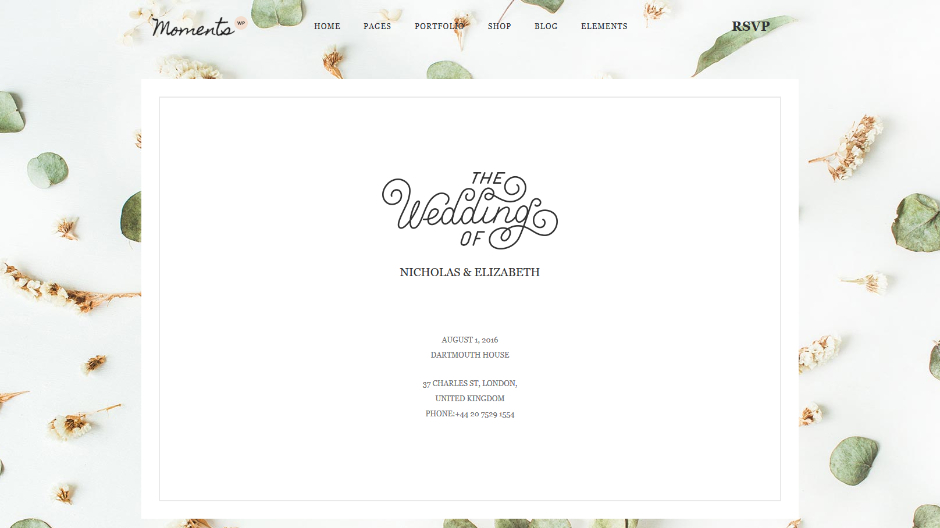 Moments Wedding Invitaion WordPress Theme