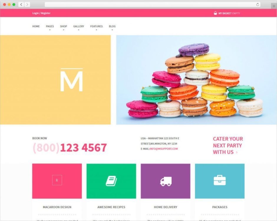 Macaroon is a delicious WordPress theme that’s as colorful as it’s namesake cookies. Look at that! It makes me want a cookie and to build an awesome looking online shop. Thanks to all the features Macaroon delivers, and yeah I know it’s not actually named for the macaron, it’s totally possible. (Macaroons are the coconut based cookie, macarons are the delicious meringue based cookie. The more you know.) Macaroon is powerful, flexible and it delivers the kind of user experience you’d expect from a premium quality, colorful WordPress theme. Check out the front page. Colorful Macaroon Sweet Shop Colorful…