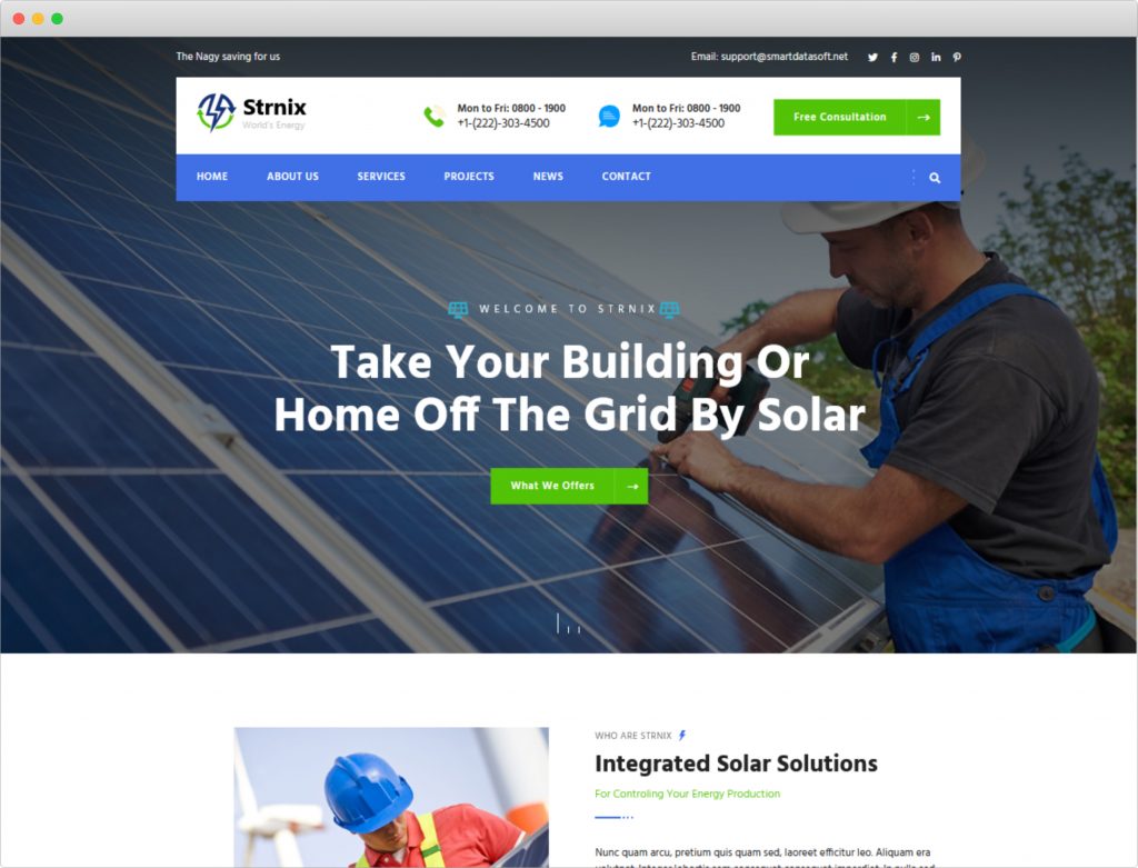 Here’s something new and it you might like. Templified made it and it’s called Strnix, Solar Panel Manufacturer WordPress Theme.
